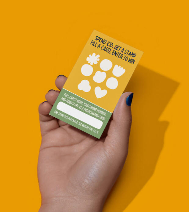 We’ll deliver a stack of loyalty cards and a window sticker to show you’re taking part.When a customer spends £10 or more, just initial one of the stamp shapes on their card.That’s it. No apps. No scanners. Just a pen and a second of your time.When a customer fills their card (8 stamps), they hand it in at any participating shop to enter our quarterly prize draw – with prizes donated by local businesses like yours.Why Join?